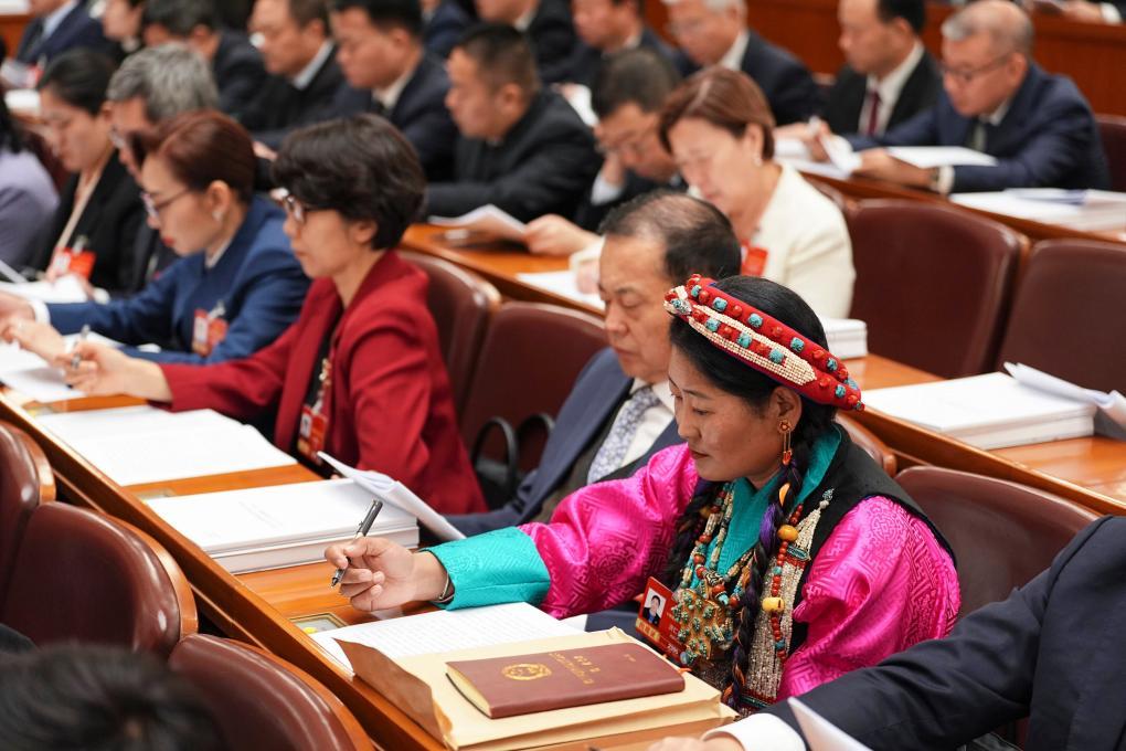 3月5日,全國人大代表次仁措姆出席十四屆全國人大四次會議開幕會。