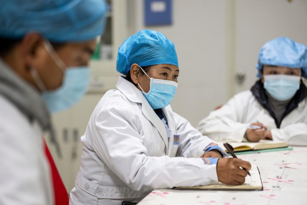 2月11日,在西藏拉薩,全國人大代表次仁措姆在西藏甘露藏醫(yī)藥產(chǎn)業(yè)集團有限公司生產(chǎn)車間調研。