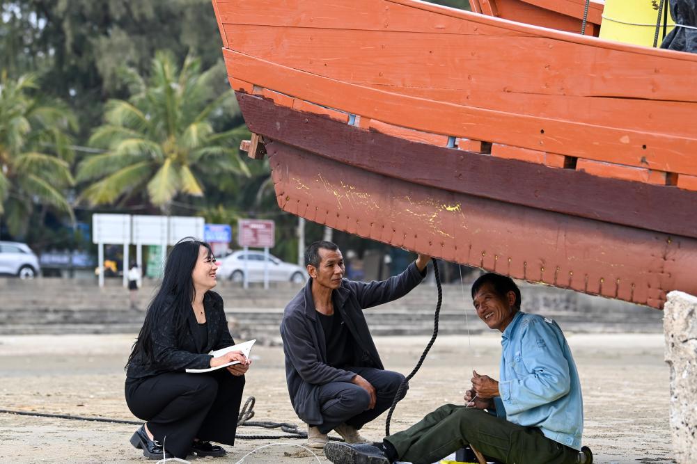 2月7日,在廣西東興市,全國政協(xié)委員蘇海珍(左)與當?shù)貪O民交流。