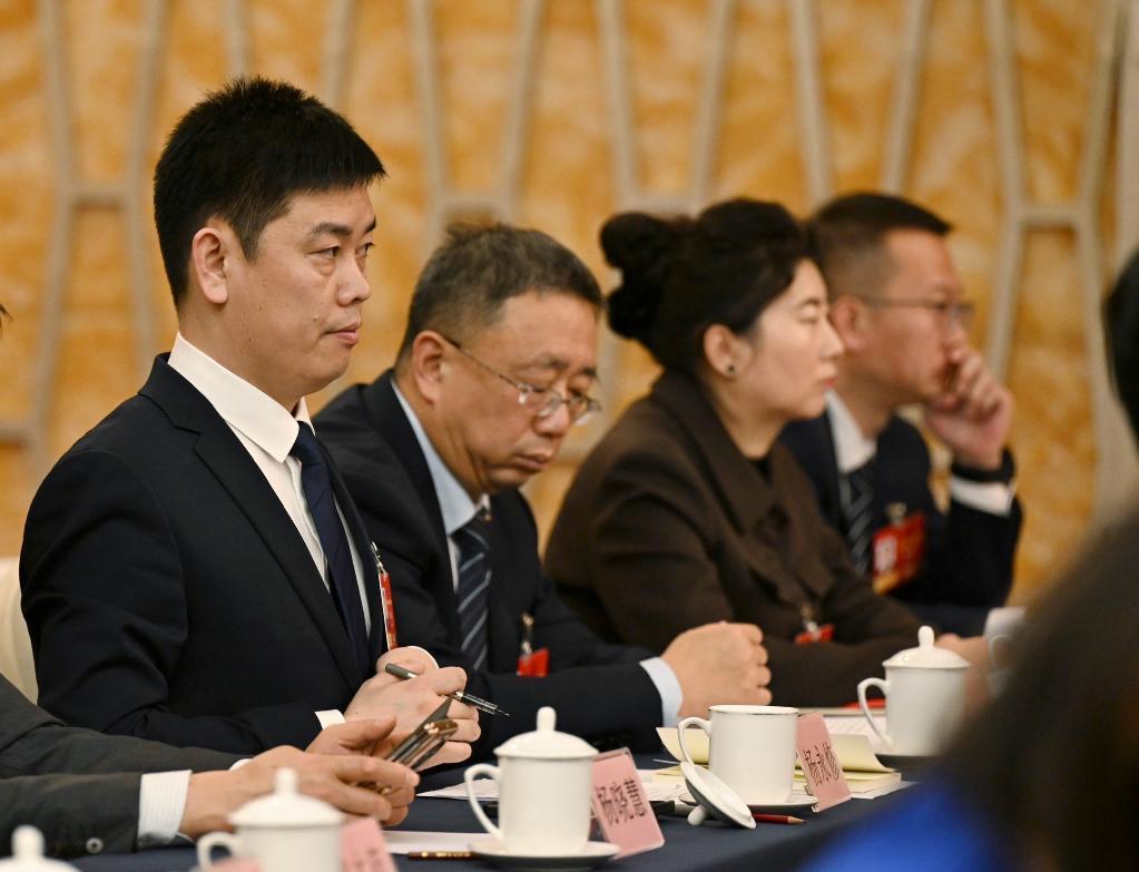 2026年3月6日,十四屆全國人大四次會議上海代表團(tuán)舉行開放團(tuán)組會議。這是師延財(cái)代表在聽會。