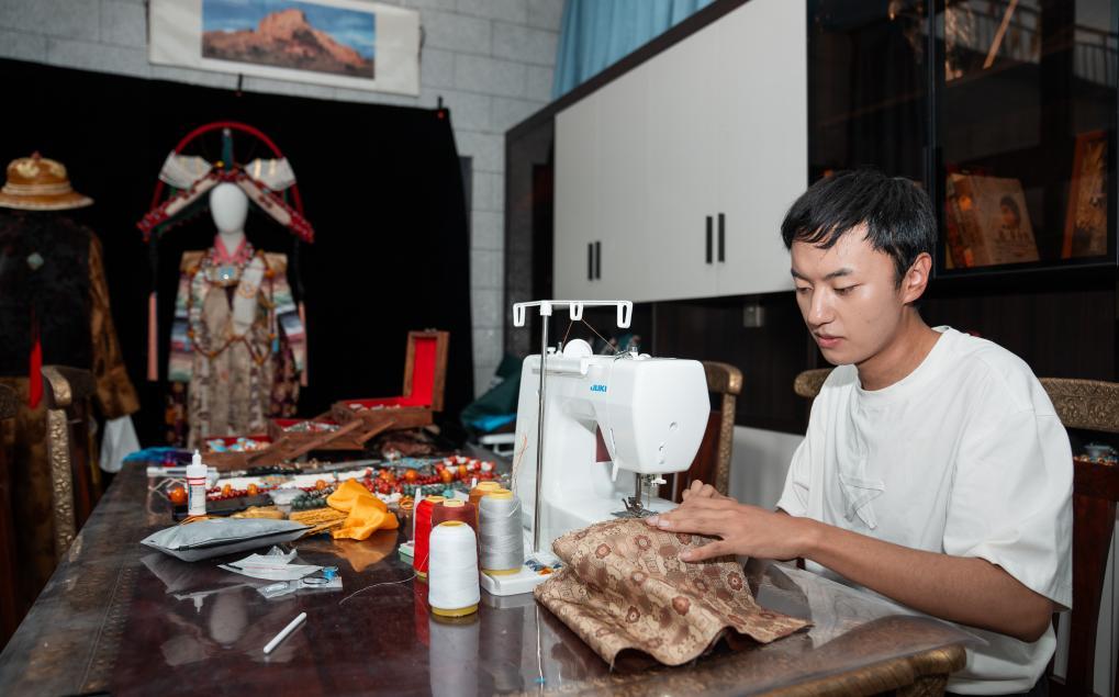 2025年9月11日,藏裝設(shè)計(jì)師班珠丹塔在位于拉薩的家中縫制藏裝。他將藏族傳統(tǒng)藝術(shù)元素與現(xiàn)代設(shè)計(jì)理念相結(jié)合,讓藏服煥發(fā)新的時(shí)尚活力,其作品登上國內(nèi)外文化舞臺,詮釋著傳統(tǒng)之美。