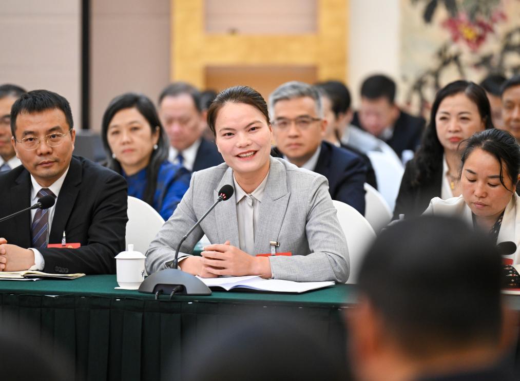 2026年3月6日,十四屆全國人大四次會議廣東代表團(tuán)舉行開放團(tuán)組會議。這是沈燕芬代表參會。