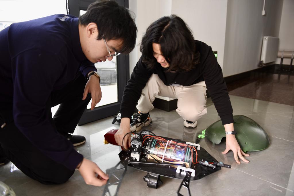 2025年3月18日,儲逸塵(左)和同事在沈陽粼動(dòng)仿生科技有限公司內(nèi)組裝兩棲仿生海龜機(jī)器人。儲逸塵在大學(xué)的社會實(shí)踐中關(guān)注到仿生機(jī)器人可在漁業(yè)養(yǎng)殖中發(fā)揮巨大作用,于是在東北大學(xué)創(chuàng)立仿生智能實(shí)驗(yàn)室,后又創(chuàng)業(yè)成立公司,帶領(lǐng)團(tuán)隊(duì)深耕水下仿生機(jī)器人領(lǐng)域,促進(jìn)漁業(yè)養(yǎng)殖提質(zhì)增效。