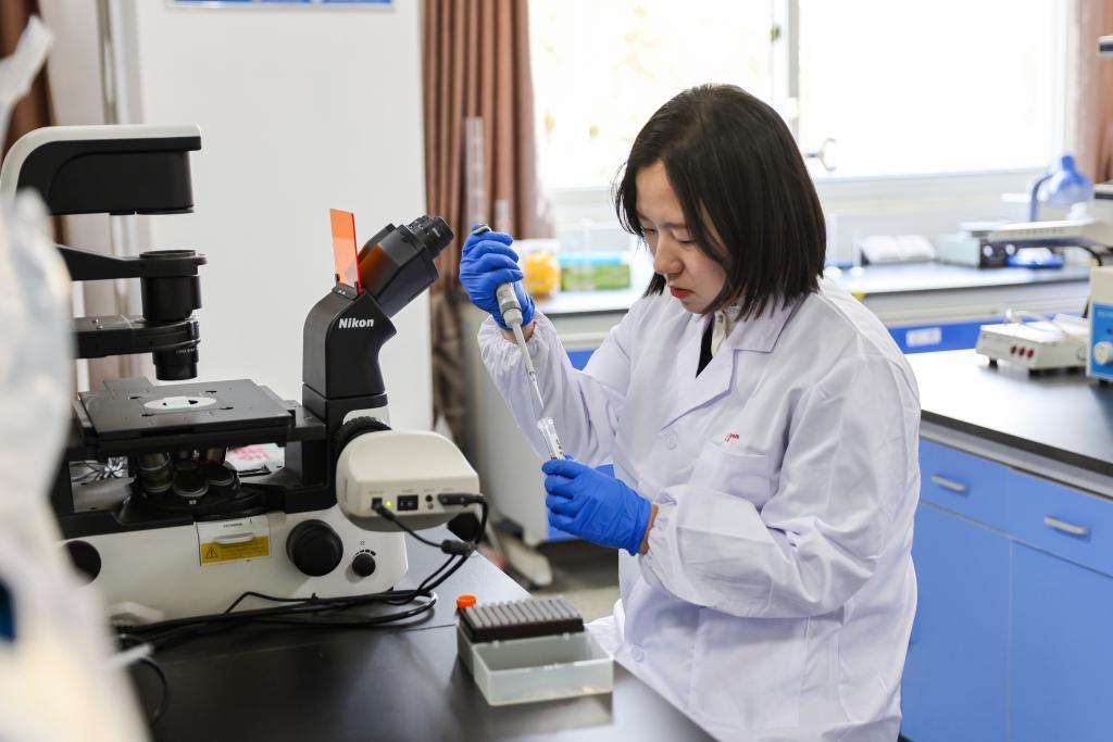 2022年2月21日,王虹在中國礦業(yè)大學(xué)文昌校區(qū)綜合樓實(shí)驗(yàn)室做實(shí)驗(yàn)。