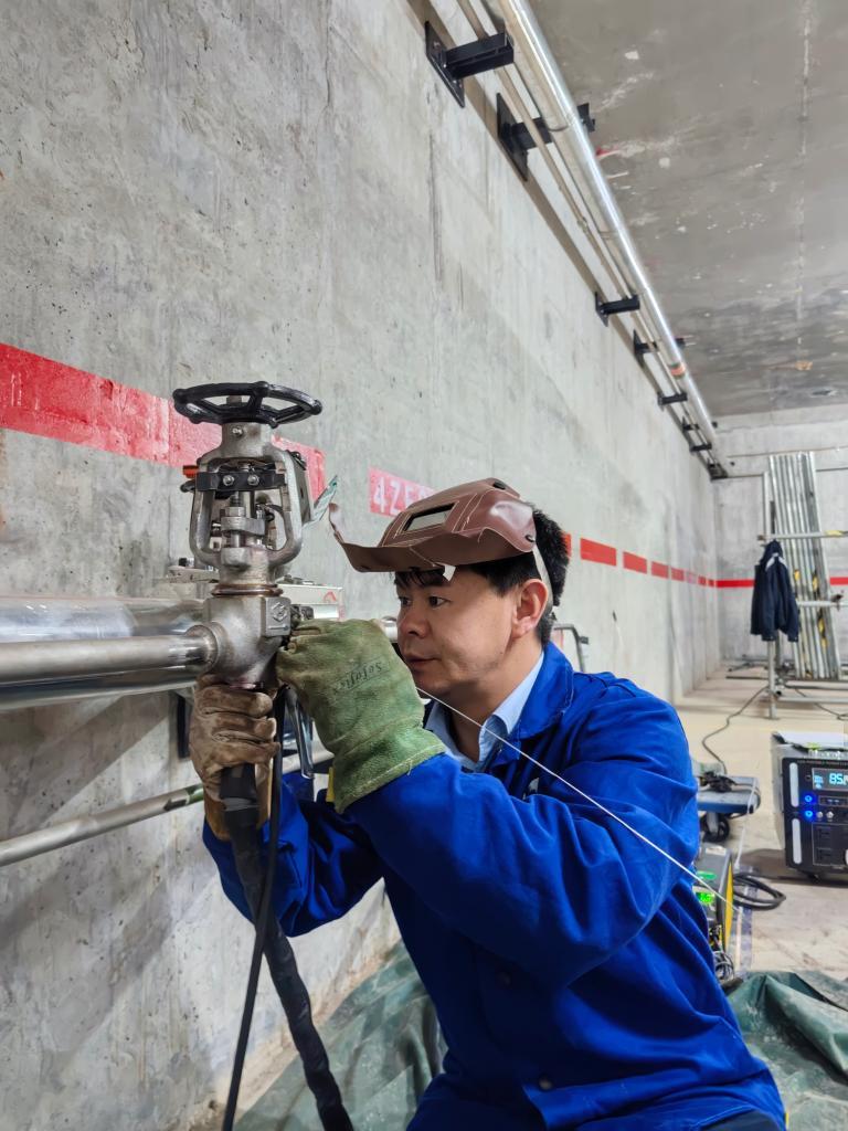 2026年1月25日,師延財(cái)在位于福建省福清市的核電廠房內(nèi)進(jìn)行焊接作業(yè)。