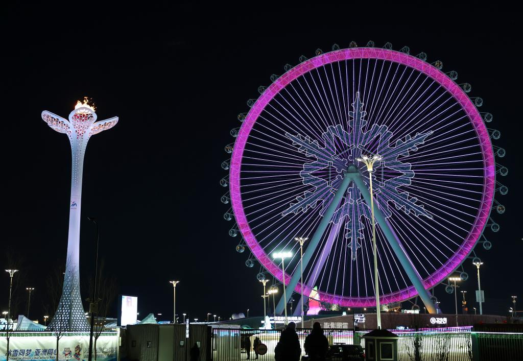 2025年2月14日,第九屆亞洲冬季運(yùn)動(dòng)會(huì)閉幕式在哈爾濱舉行。這是當(dāng)天在哈爾濱冰雪大世界拍攝的亞冬會(huì)主火炬和摩天輪。新華社記者 黃偉 攝