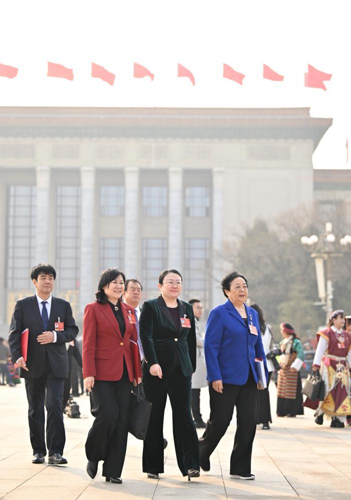 3月12日,第十四屆全國人民代表大會第四次會議在北京人民大會堂舉行閉幕會。這是閉幕會后,代表們走出人民大會堂。
